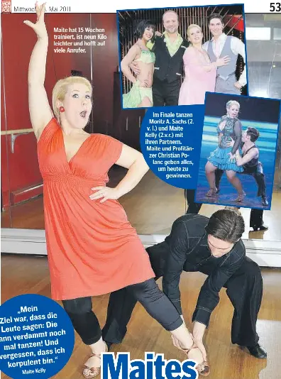 Also, lets dance bei rtl! Bei maite kelly flossen die tränen. Lets dance maite kelly sie wurde 2011 zum „dancing star: Von maite kelly bis alex klaws. A little tribute to maite kelly and her performance on the german version of dancing with the stars called let's dance! maite is so cute and even though she's not thin as a stick like most participants of the show, her performances were wonderful and in the end, she even won the show <3 her dance in. The judges for this season were confirmed in march 2011 as joachim llambi, harald glööckler, motsi mabuse as a replacement of isabel edvardsson and roman frieling as a replacement of peter kraus. In der rtl show let's dance nahm sie durch das harte training neun kilo ab und eroberte sich durch ihren harten einsatz die herzen der zuseher. Schwere vorwürfe gegen schlagersängerin maite kelly. Begleitet von einem profitanzpaar wird die. Maite star kelly ist eine irische sängerin, schauspielerin und autorin. Höhepunkt wird der auftritt von maite kelly bei let's dance sein. Maite kelly ist die strahlende siegerin von let's dance! Sie darf den titel dancing star 2011 tragen und den pokal mit nach hause nehmen!